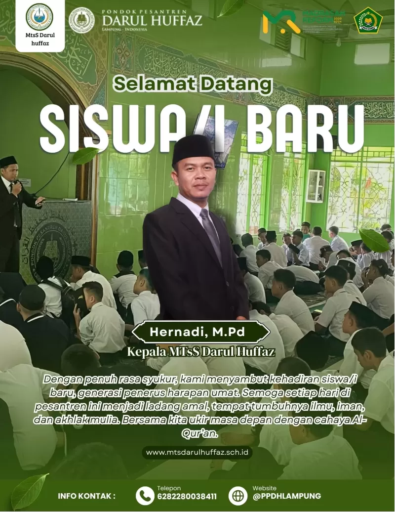 Selamat datang santri baru di Pondok Pesantren Darul Huffaz dengan penuh rasa syukur, kami menyambut kehadiran siswa dan siswi baru, generasi penerus harapan umat. Semoga setiap hari di pesantren ini menjadi ladang amal, tempat tumbuhnya ilmu, iman, dan akhlak mulia. Bersama kita ukir masa depan dengan cahaya Al-Qur’an.